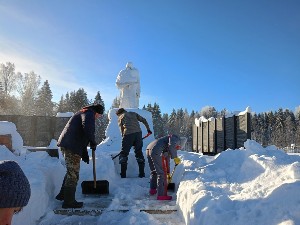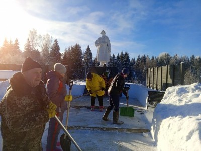 Жители деревни Слаутино и поселка Рунский в солнечный морозный день совместными усилиями убирали снег у памятника, очистили мемориальную плиту и сам памятник. Трудовой десант был посвящен выражению памяти и уважения воинам, погибшим в годы Великой Отечественной войны.